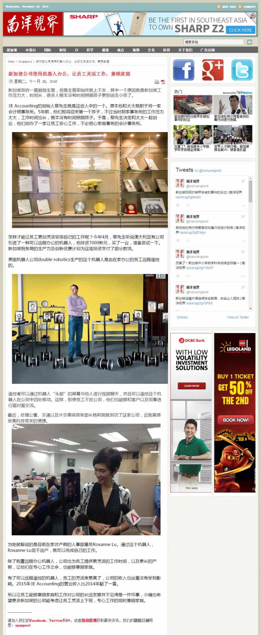 The Double Robotics was first brought in on April after Mr Lawrence Chai, the managing director of 3E Accounting learned that an accounting firm in Australia had invested in the technology to improve work-life balance for its employees.
