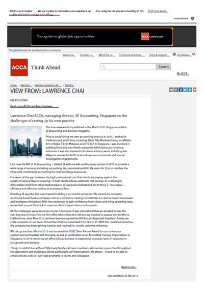3E Accounting Pte. Ltd. wishes to thank Singapore ACCA for the feature and all staff and clients for their continuous support.